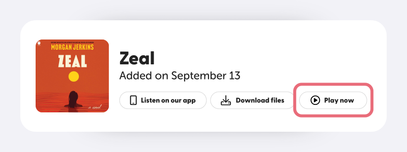 To access the web player, make sure that you have wifi enabled on your computer, then go to your Libro.fm library, find the book you want, and hit “Play now.”